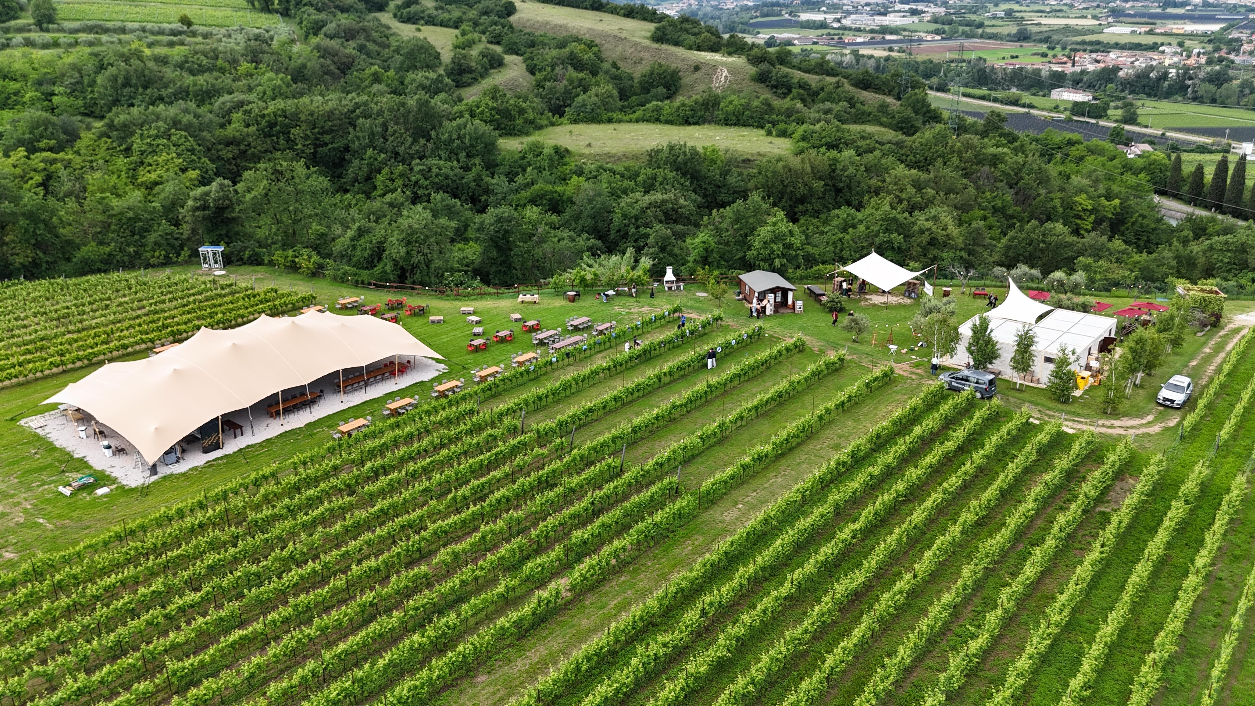 In caso di pioggia accanto alle nostre vigne potremo ospitare fino 150 persone sotto la nostra nuova tensostruttura dove potrete continuare il vostro cammino enogastronomico